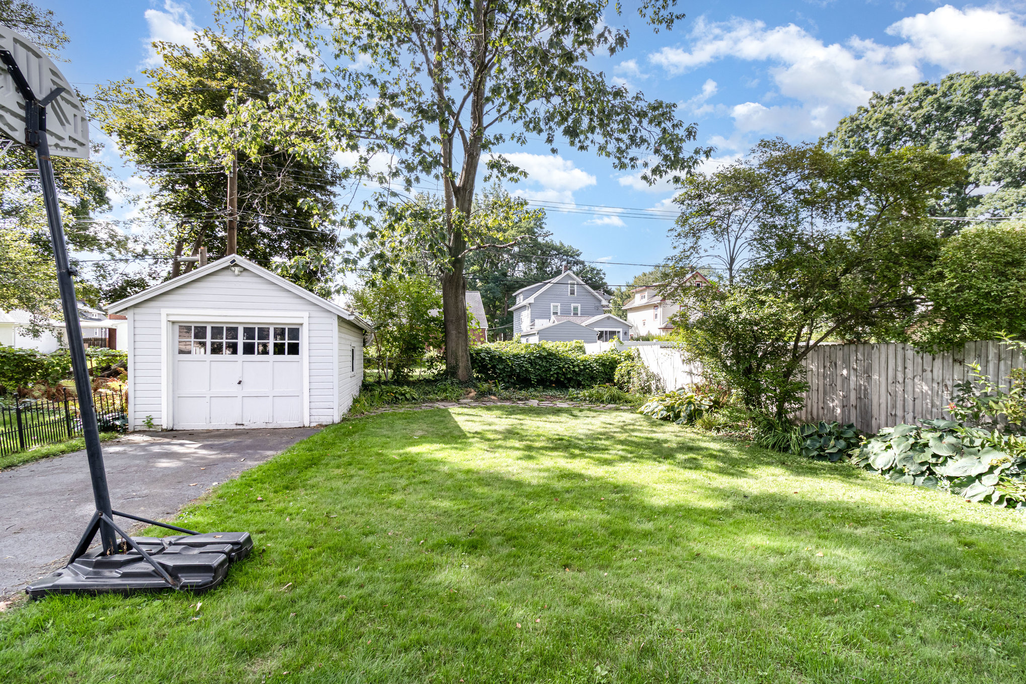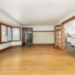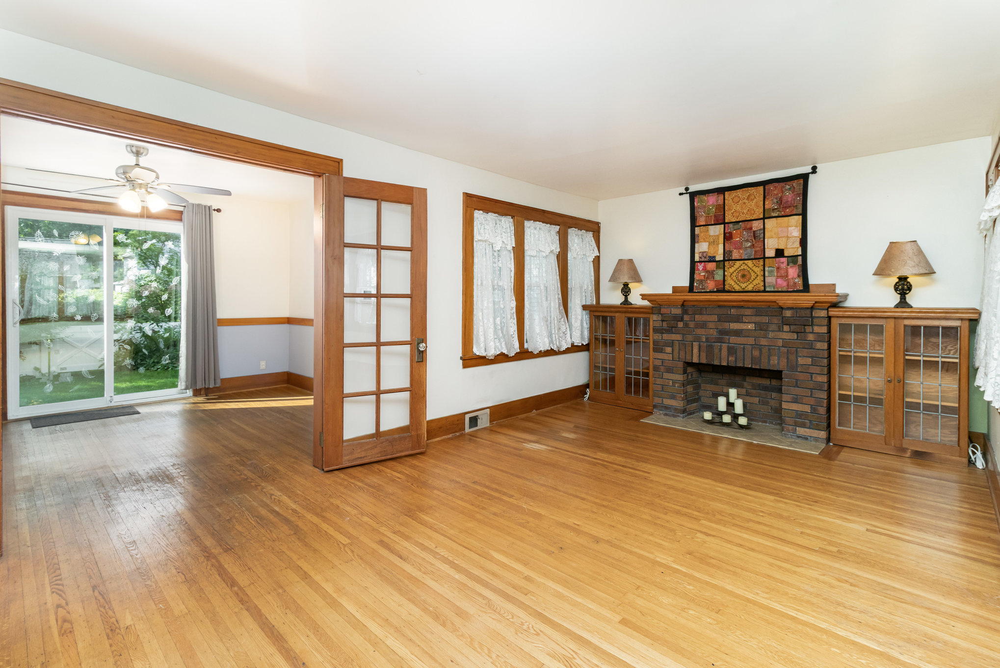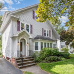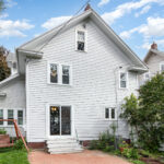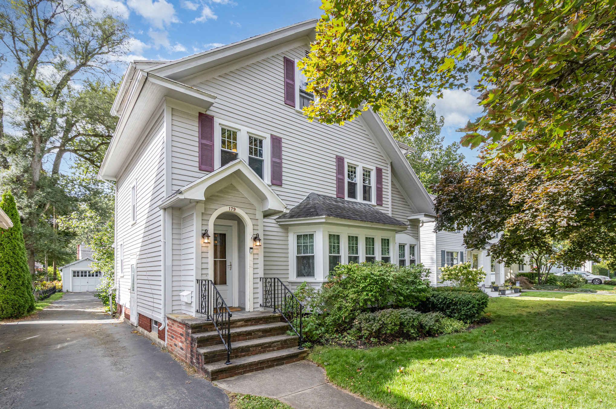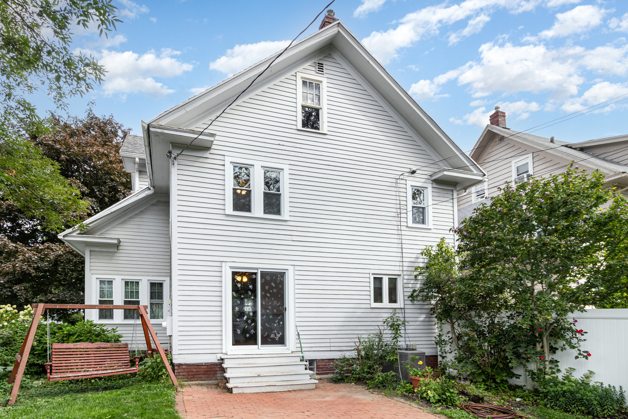 Classic Colonial on centrally located neighborhood street with sidewalks. Enjoy the convenient location just steps from K-6 schools. Slate stone front steps with covered entry. Spacious front living room (26’x15′) with tons of windows and natural light- natural gumwood trim, decorative fireplace with beautiful mantel & built-in cabinets with leaded glass doors. French doors lead to formal dining area with slider to back patio. Open kitchen has white cabinetry, tile floor, appliances included. Hardwood floors throughout. Basement has powder room and partially finished room for possible office or workout space. Full attic with stair access is perfect for storage or finishing for additional space. Furnace and central air 4 years, hot water tank 5 years, thermal replacement windows throughout. Deep backyard has private fenced area with patio and garden full of beautiful perennials.