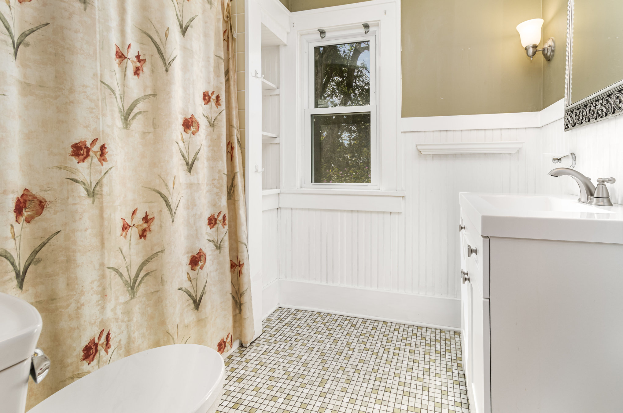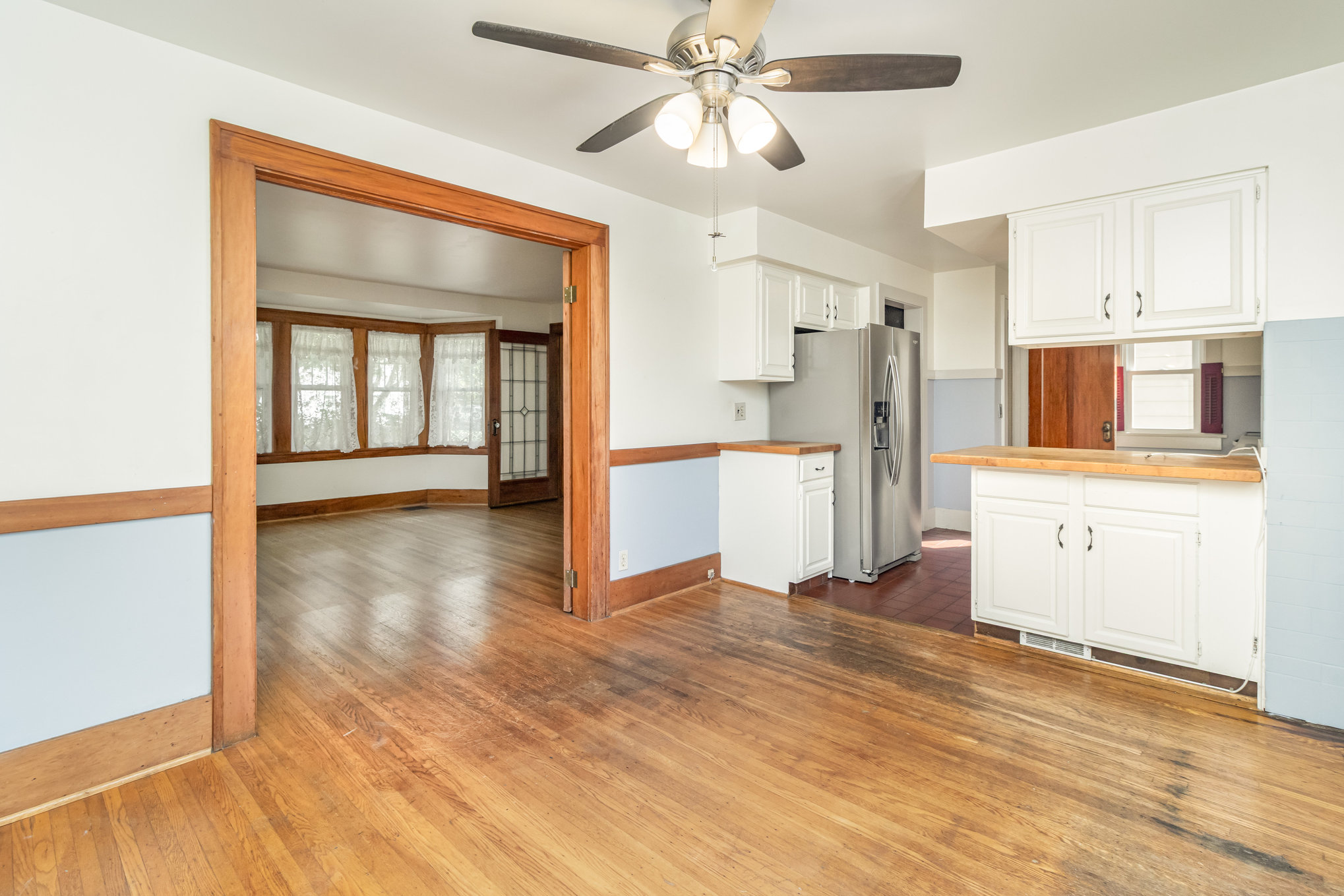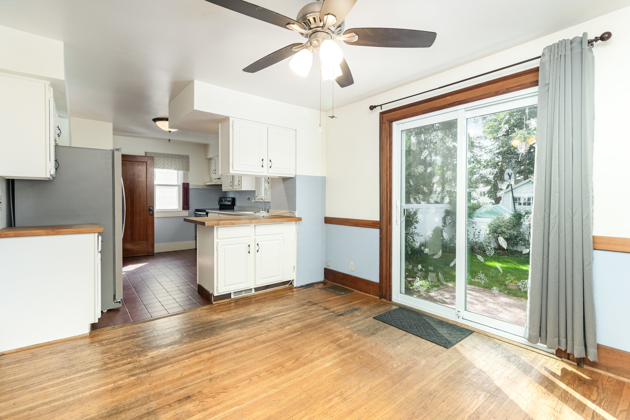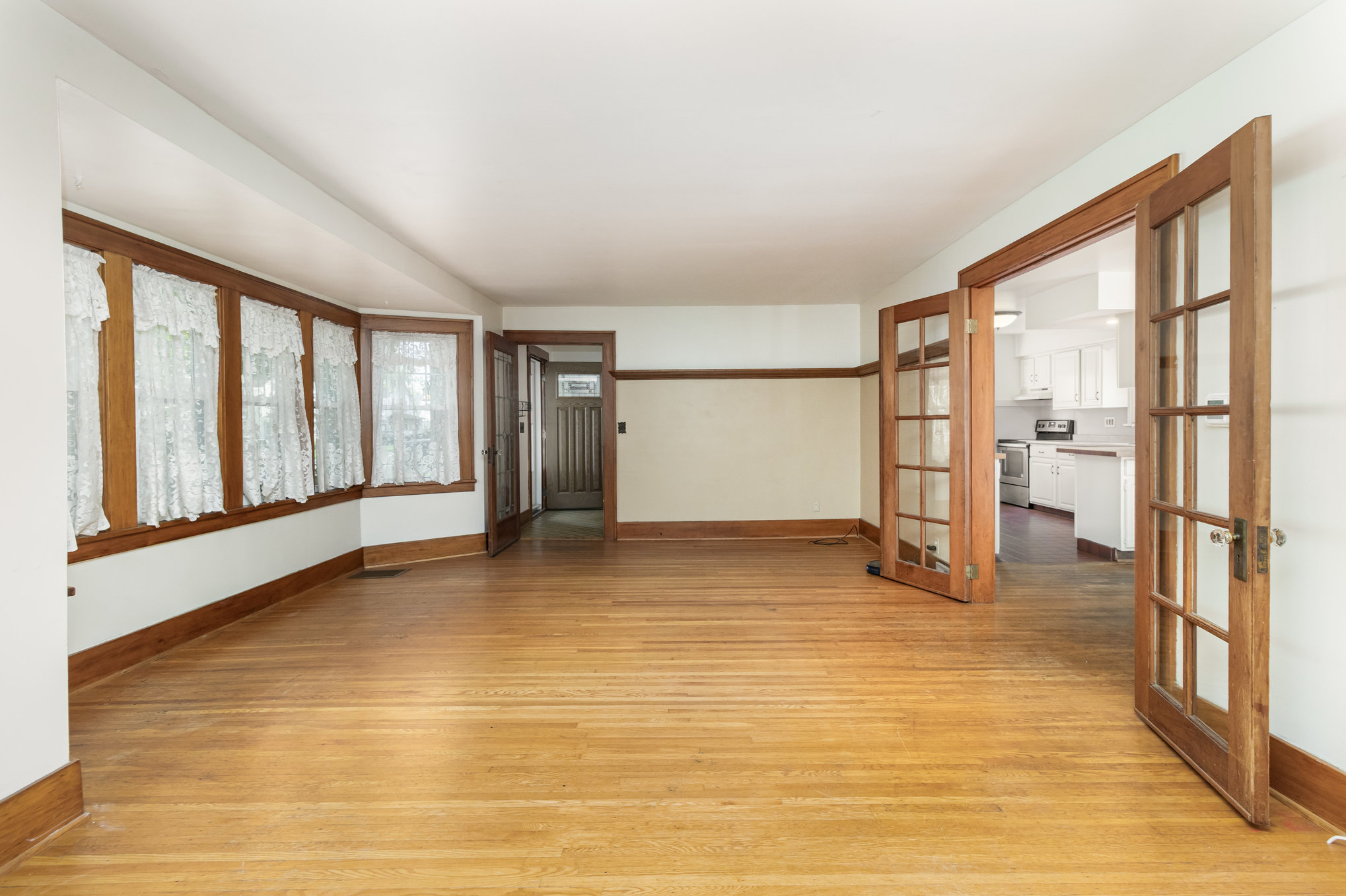 Classic Colonial on centrally located neighborhood street with sidewalks. Enjoy the convenient location just steps from K-6 schools. Slate stone front steps with covered entry. Spacious front living room (26’x15′) with tons of windows and natural light- natural gumwood trim, decorative fireplace with beautiful mantel & built-in cabinets with leaded glass doors. French doors lead to formal dining area with slider to back patio. Open kitchen has white cabinetry, tile floor, appliances included. Hardwood floors throughout. Basement has powder room and partially finished room for possible office or workout space. Full attic with stair access is perfect for storage or finishing for additional space. Furnace and central air 4 years, hot water tank 5 years, thermal replacement windows throughout. Deep backyard has private fenced area with patio and garden full of beautiful perennials.