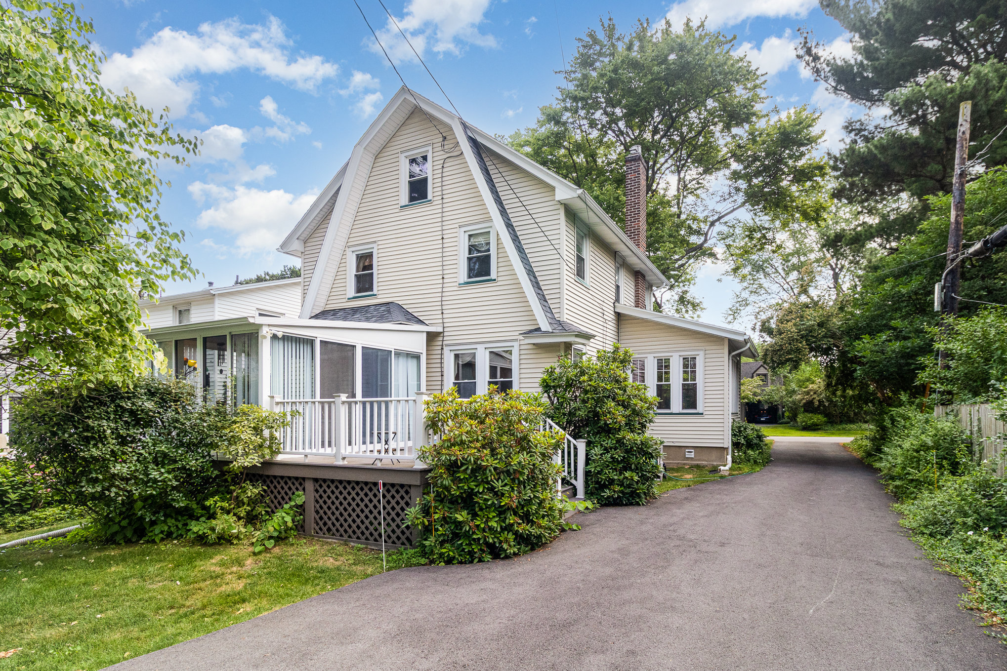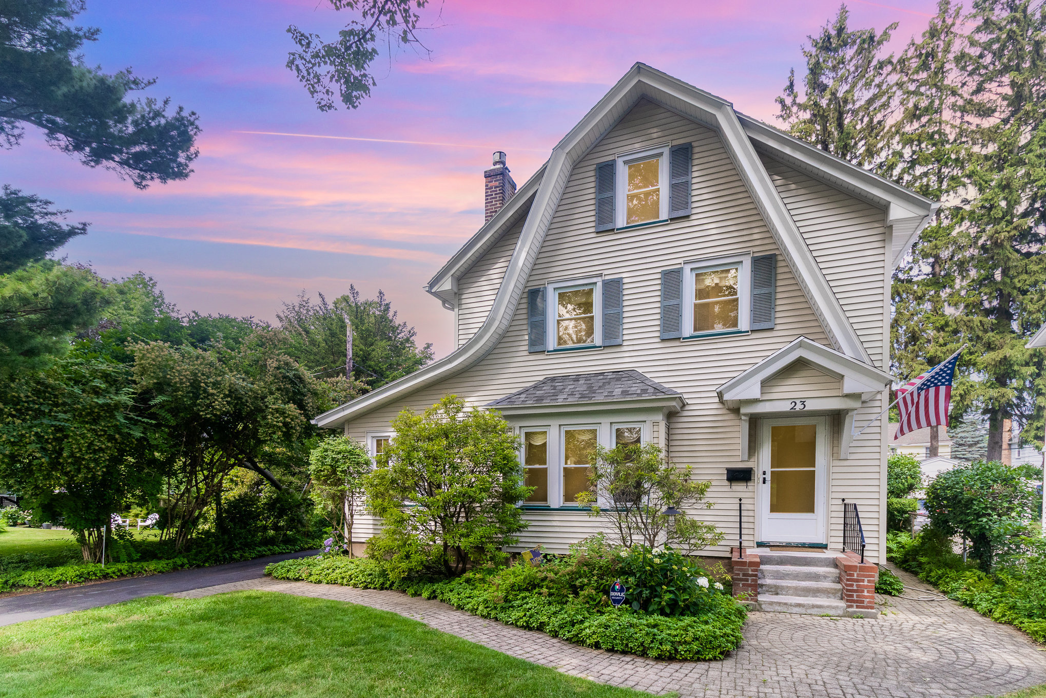 Neighborhood dreams! Lovingly maintained 1920’s colonial. Beautiful natural gumwood trim throughout. Living room has gas fireplace and built-in shelving. Kitchen has oak cabinetry, tile backsplash, Corian counter, vinyl floor- all appliances included. There is a formal dining room plus a sun room/office. Enjoy the 3-season enclosed porch that opens to back deck- maintenance-free composite decking. Primary Bedroom has walk-in closet plus single closet. Full attic with stair access offers tons of storage. Roof is a tear-off 2017, furnace 2017, A/C 2018, hot water tank 2019, new driveway 2024. Vinyl siding, thermal replacement windows throughout, 2 car garage & shed. Delayed negotiations until Monday, July 14, 2025 at 11am.