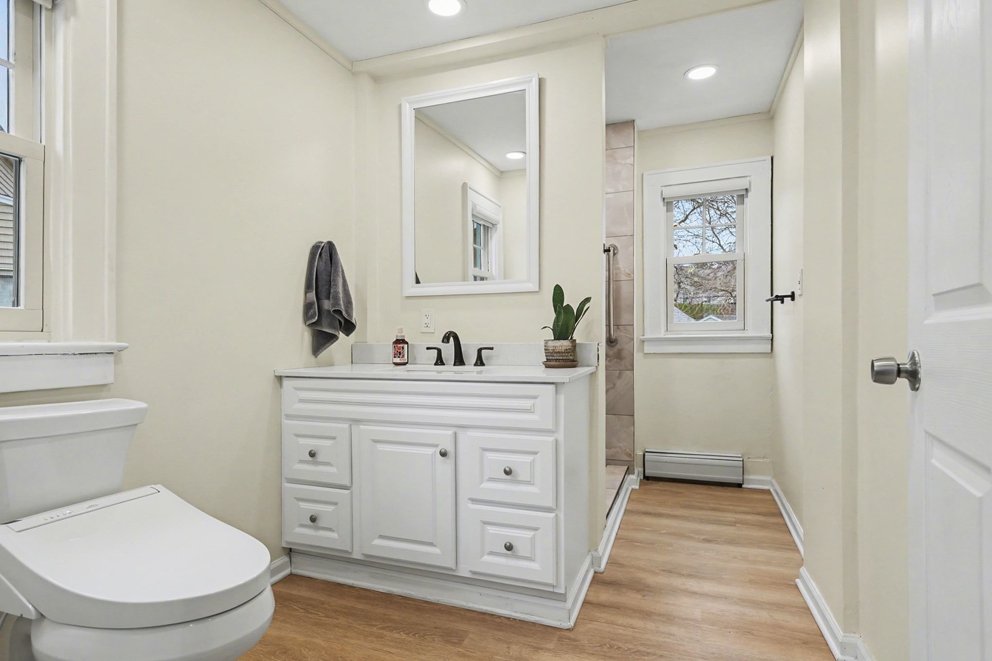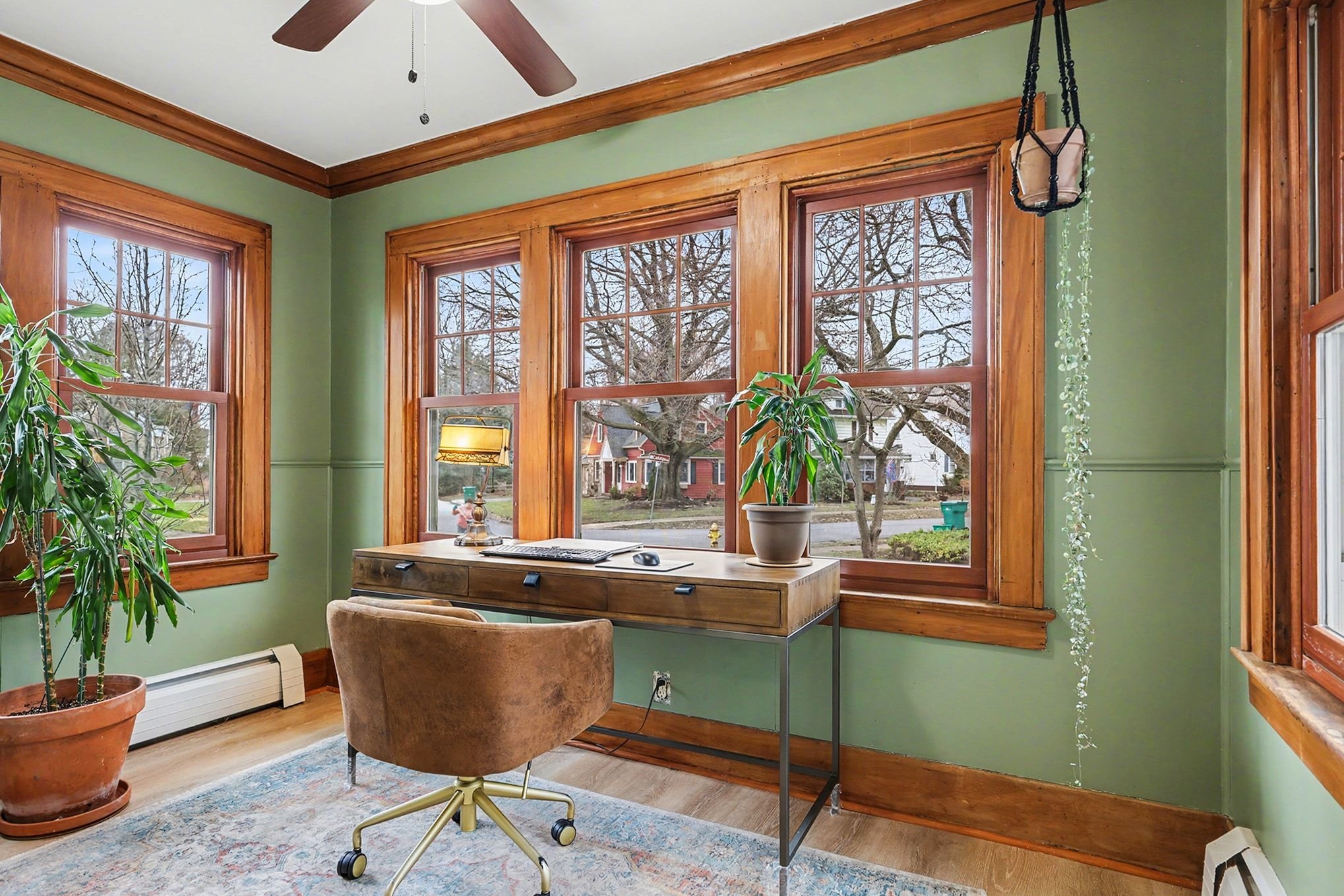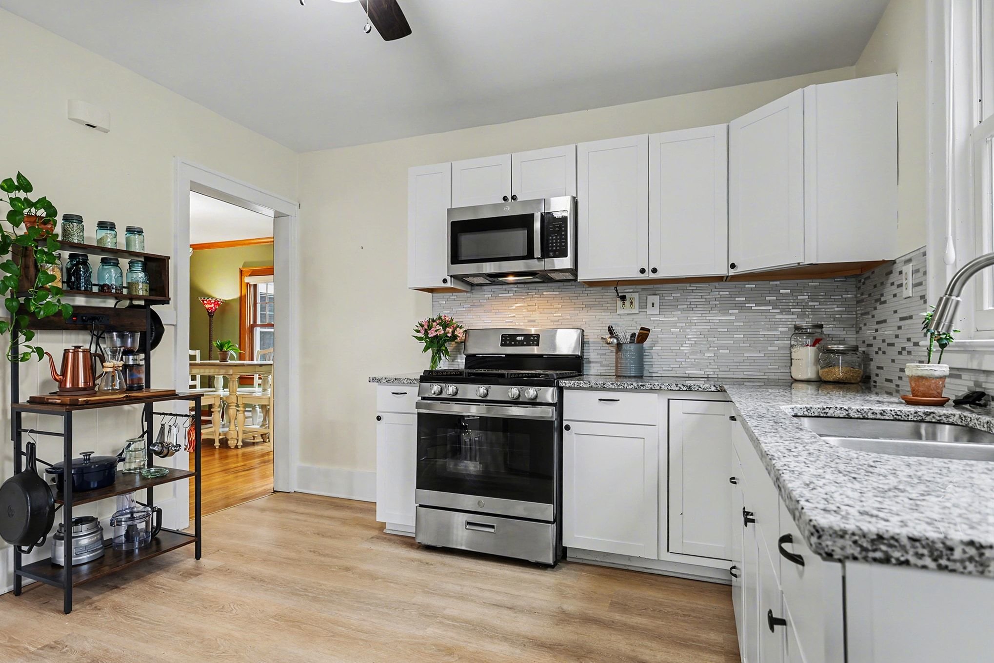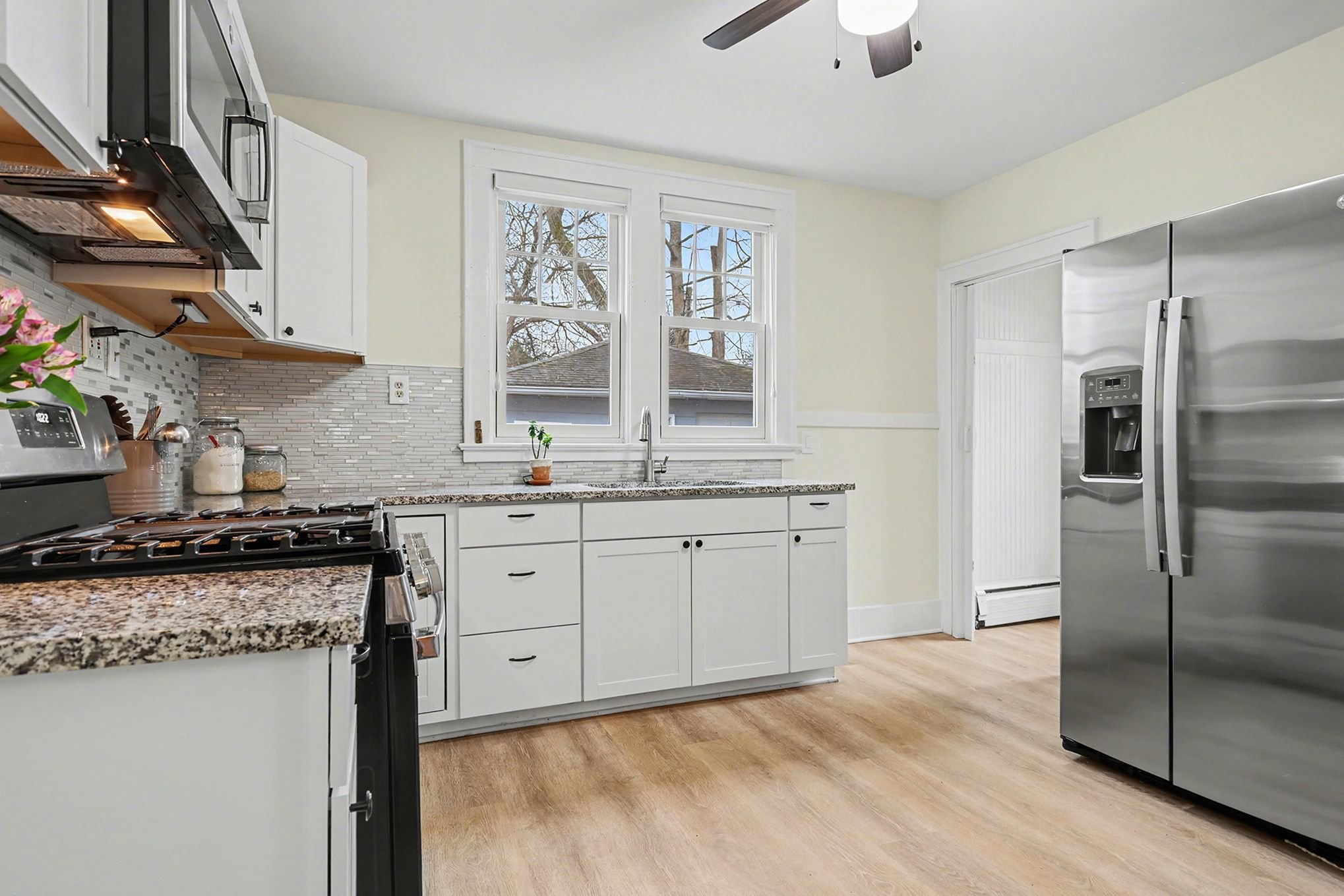 Dreamy 1930’s Charmer located in Winona Woods! FIRST floor bedroom and FULL bath completely updated with walk-in shower. Perfect home for all stages of life. Gorgeous natural gumwood trim, leaded glass, crown molding & hardwood floors. Thermal replacement windows throughout. Large front living room (17’x11′) has wood burning fireplace and built-in cabinet. Den/Sun Room could be the perfect home office. Recently updated kitchen has Quartz counters, tile backsplash, vinyl flooring and stainless appliances. Second floor has 3 bedrooms and another updated full bathroom. Large, open basement perfect for storage or finishing. Fully fenced yard with detached 2 car garage. Delayed negotiations until Monday, March 30, 2026 at 11am.